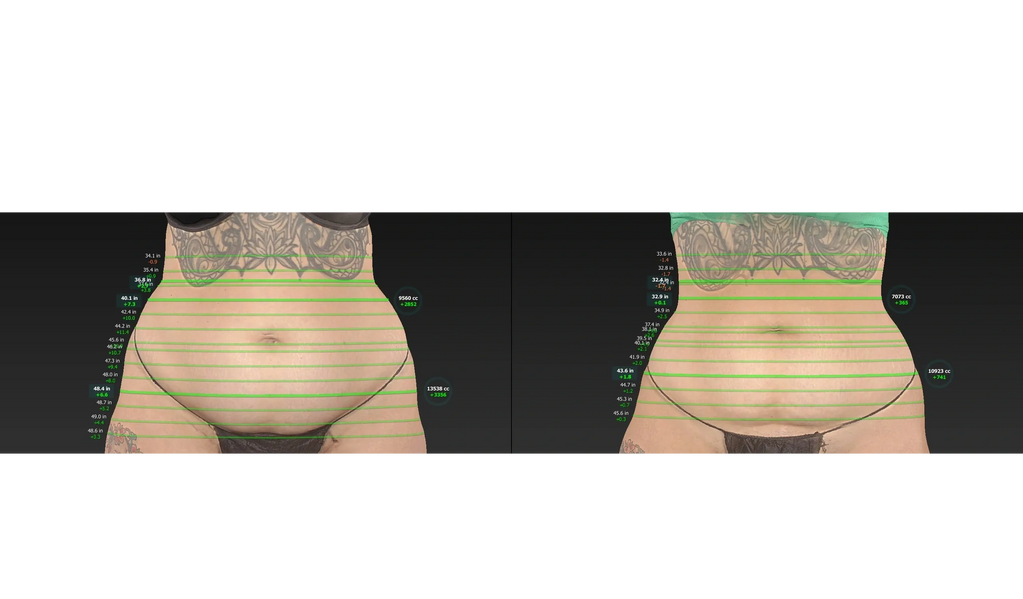 This patient achieved an incredible transformation through six Bodhi Sculpting sessions, leading to remarkable changes in body size and shape.